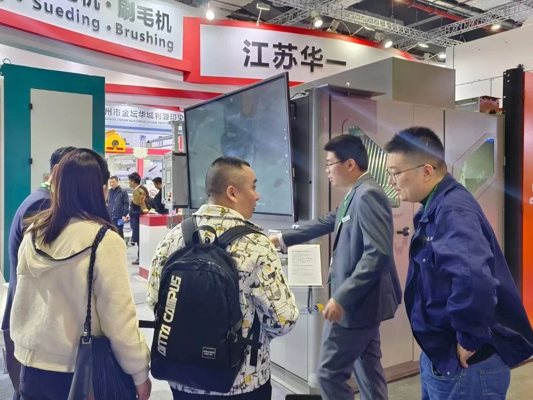 Pelanggan dari dalam dan luar negeri berhenti di depan stan, mengagumi perhatian Huayi terhadap detail produk.